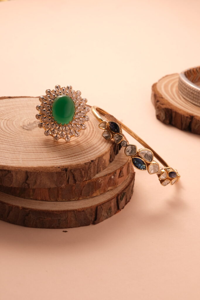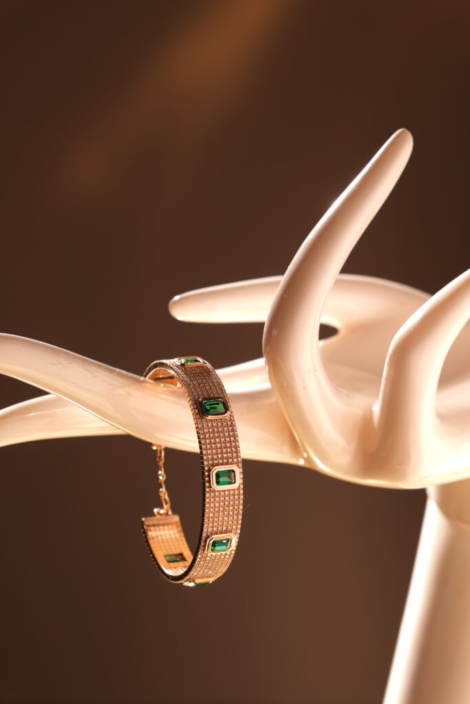 ROSE GOLD KADA / RING STUDDED WITH CERTIFIED DIAMOND AND SEMI PRECIOUS STONES IN 18 KT GOLD This Rose Gold Kada/Ring Studded with Certified Diamonds and Semi-Precious Stones in 18 KT Gold is an elegant fusion of contemporary charm and timeless craftsmanship. Designed for those who appreciate the beauty of fine detailing and the sophistication […]