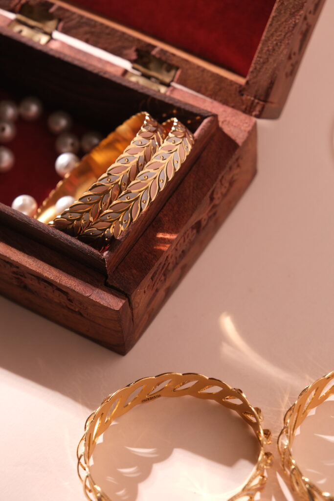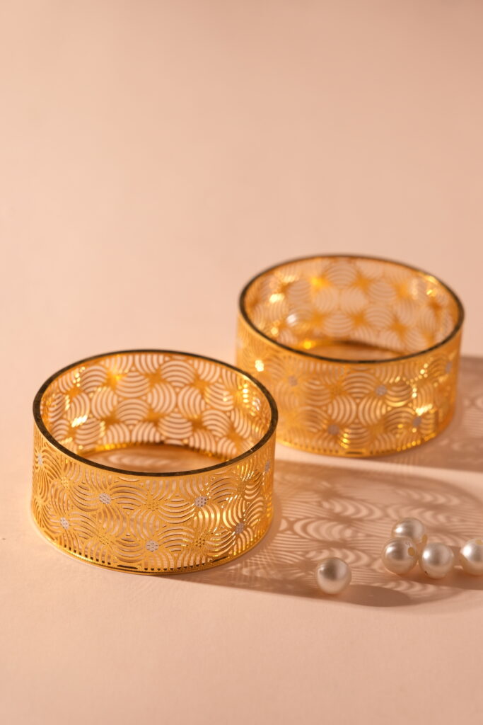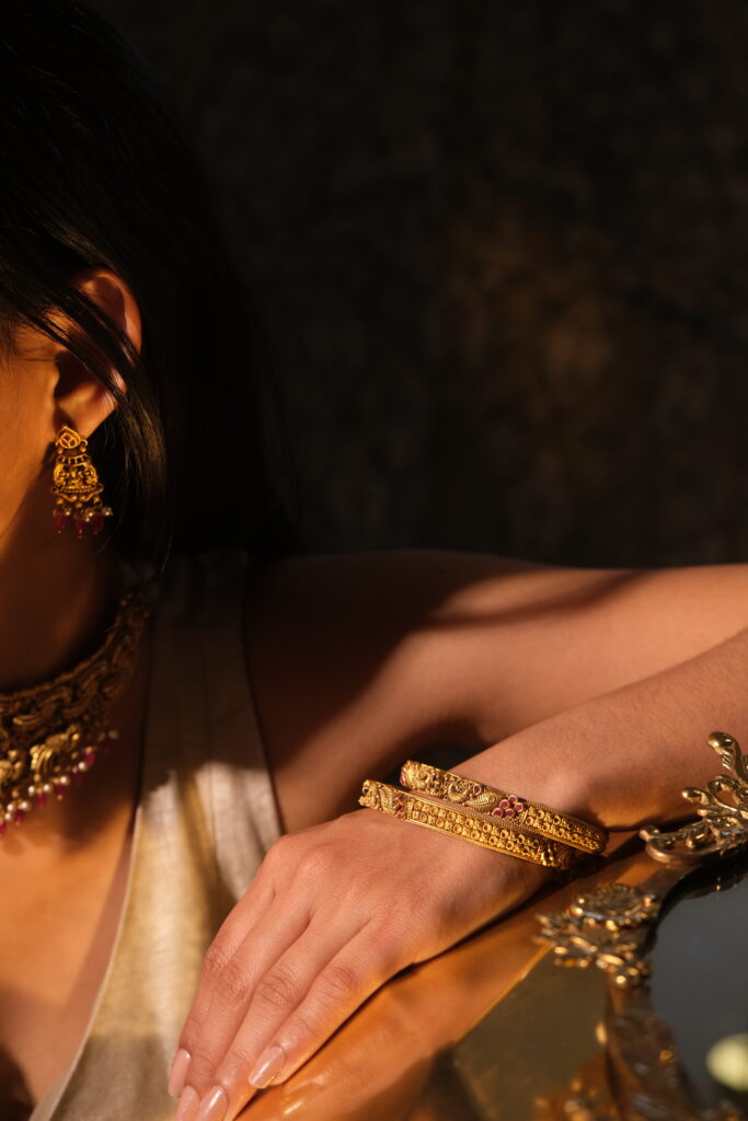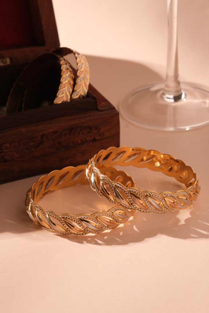 SOLID BANGLES WITH RHODIUM POLISH IN 22 KT GOLD These Solid Bangles with Rhodium Polish in 22 KT gold are a perfect example of refined luxury, combining traditional craftsmanship with modern elegance. Designed for those who appreciate the beauty of simplicity and the allure of high-quality materials, these bangles are an essential addition to any […]