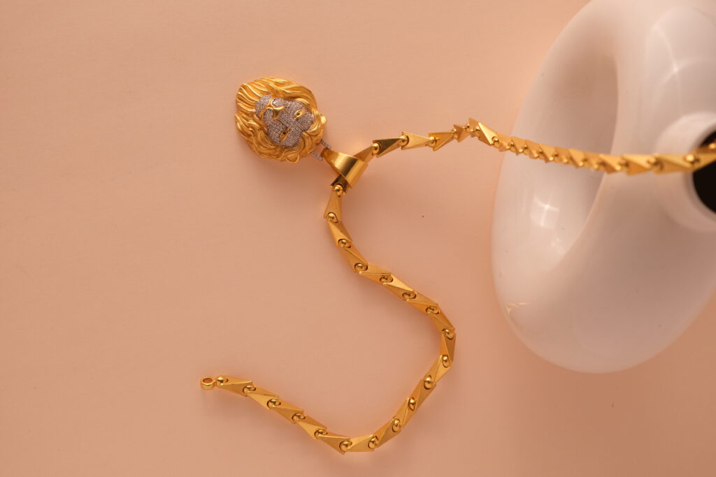 SOLID GOLD CHAIN AND STUDDED LION PENDANT IN 22 KT GOLD This Solid Gold Chain and Studded Lion Pendant in 22 KT gold is a striking combination of luxury, strength, and elegance, designed to make a bold statement while reflecting timeless craftsmanship. The pendant’s intricate detailing and powerful lion motif are perfectly complemented by the […]