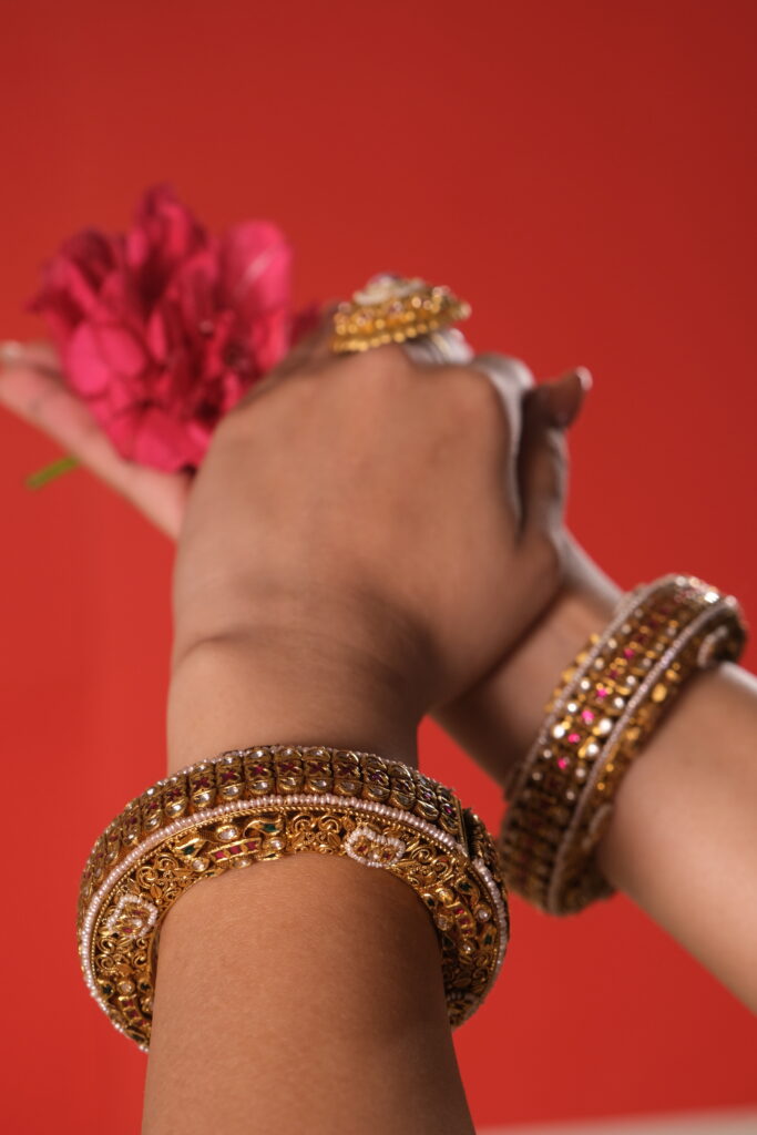 ANTIQUE KADA SET STUDDED WITH SEMI PRECIOUS STONE WITH SCREW LOCK IN 22 KT GOLD This exquisite antique kada is crafted in pure 22 karat gold, featuring a traditional design enhanced with carefully selected semi-precious stones. The intricate detailing showcases timeless craftsmanship, while the secure screw lock ensures a comfortable and firm fit. A perfect […]